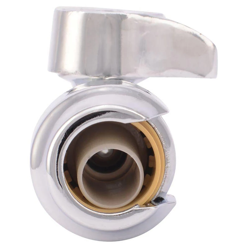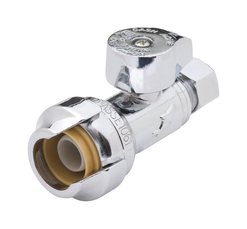 Shark Bite Straight Stops combine push-fit technology with a straight stop quarter turn valve. This allows the valve to control water flow to household plumbing fixtures and provides easy shut-off of water flow for maintenance and repair, if necessary. These valves require no solder, clamps, unions or glue. The push-to-connect end allows you to push on to Copper, PEX, CPVC or PE-RT pipe easily. This product can be easily rotated after assembly for easy installation, even in tight spaces.