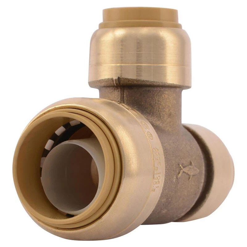 The 3/4 in. x 1/2 in. x 1/2 in. SharkBite Push-to-Connect Tee is the easiest way to join copper, CPVC or PEX pipe in any combination with no soldering, clamps, unions or glue. Just insert the pipe and the stainless steel teeth bite down and grip tight, while a specially formulated O-ring compresses to create a perfect seal. Disassembly is just as fast using the simple disconnect tool so fittings and valves can be easily changed and reused. They can even be rotated after assembly for easier installation in tight spaces. Get SharkBite and get a grip on your next plumbing project.