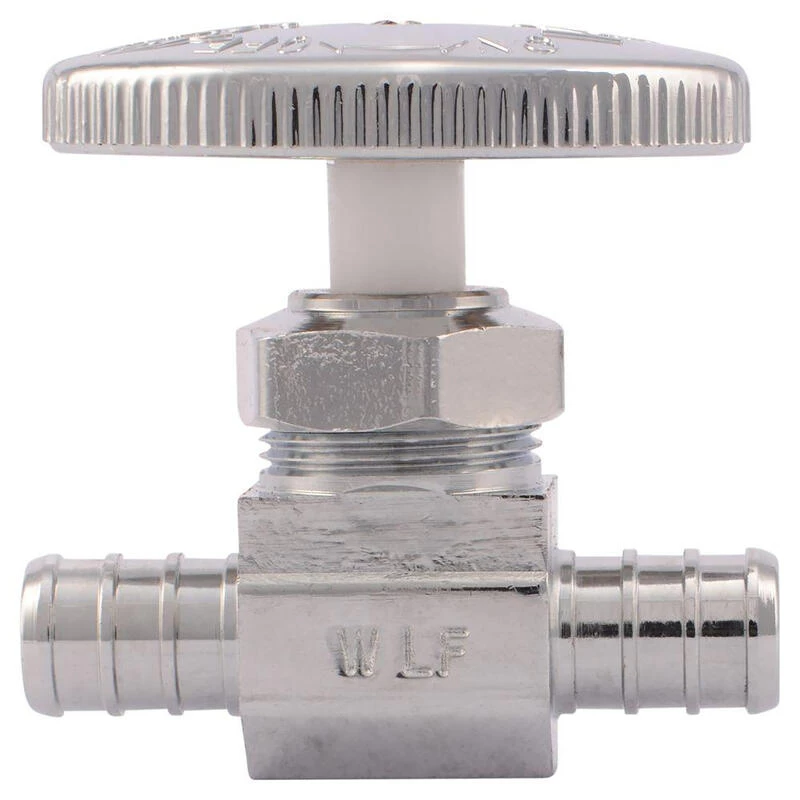 SharkBite PEX Chrome Plated Straight Stops are multi-turn valves that control water flow to household plumbing fixtures and provides easy shutoff of water flow for maintenance and repair, if necessary. These valves are barb connections that will work with either a stainless steel clamp system or a copper crimp ring system.